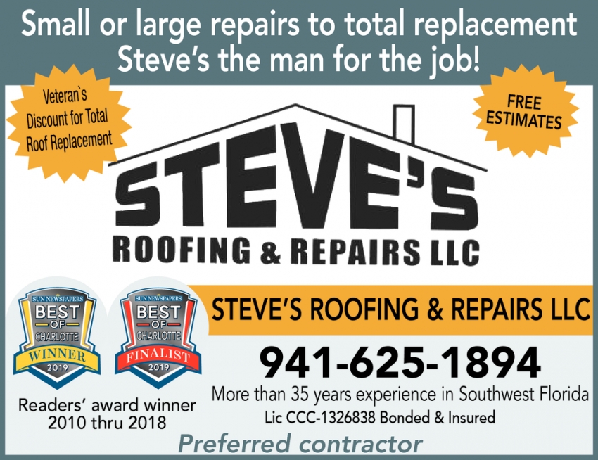 Ads for Steve's Roofing & Repairs LLC in Florida Gulf Coast
