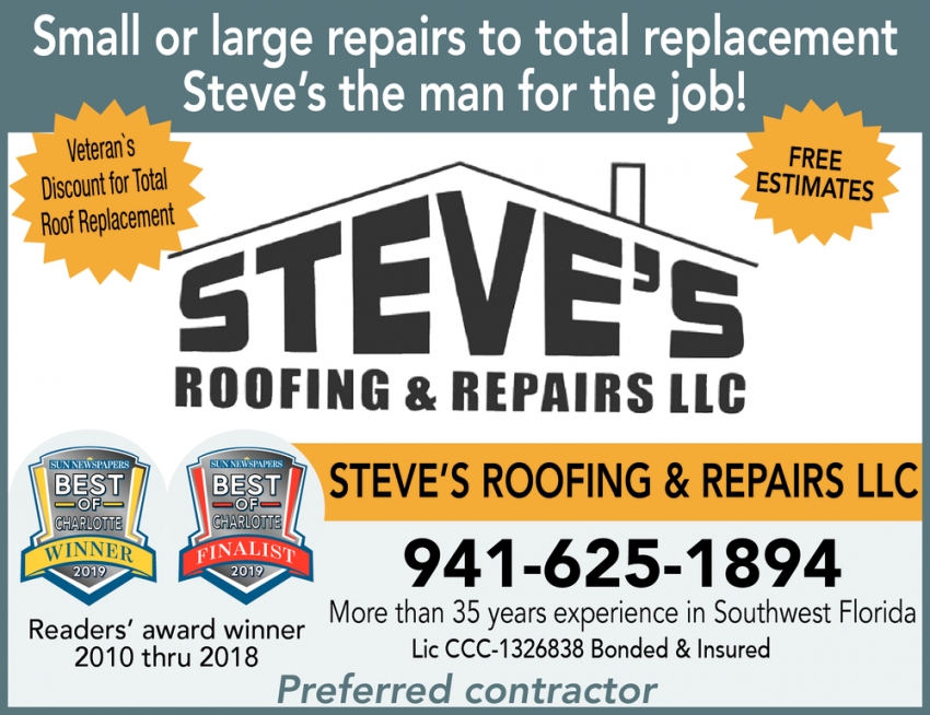 Ads for Steve's Roofing & Repairs LLC in Florida Gulf Coast