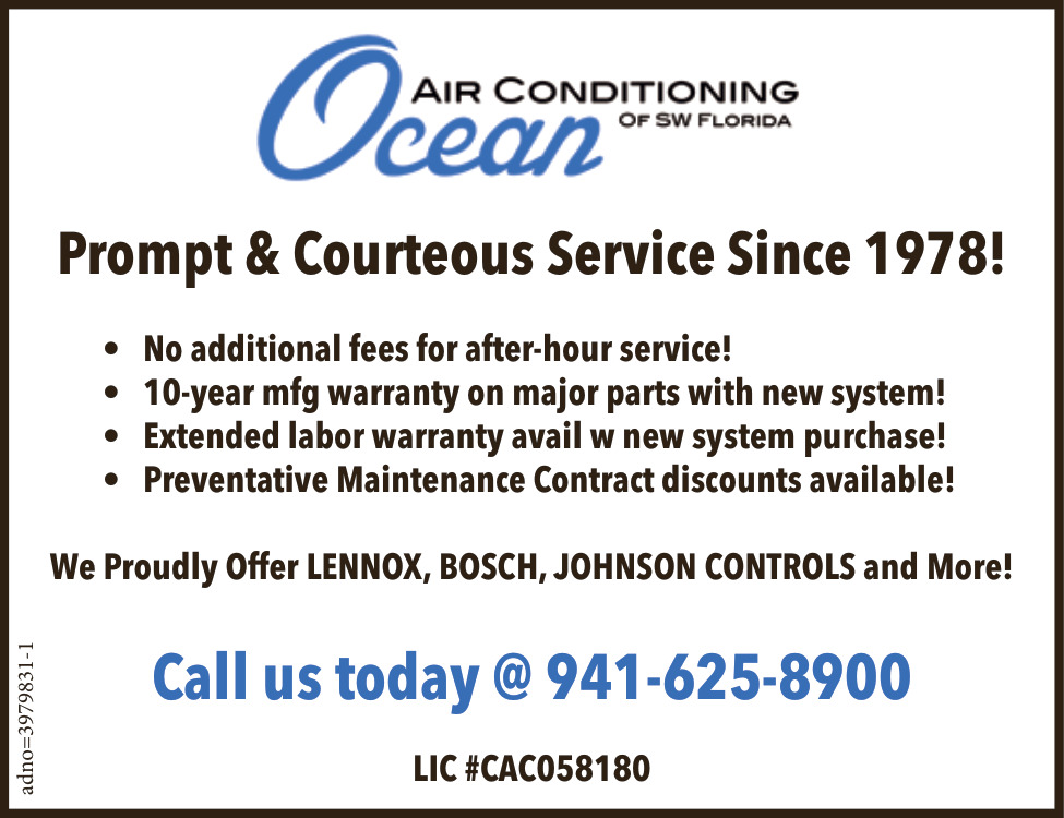 Jan 13, 2026. Ocean Air Conditioning of SW Florida Heating / Air Conditioning Ads from Your Sun Services