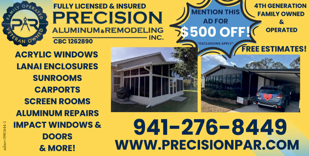 Ads for Precision Aluminium & Remodeling Inc in Florida Gulf Coast