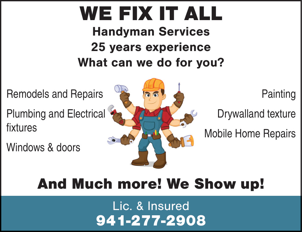 Mar 10, 2026. 941-277-2908 Handyman Service Ads from Your Sun Services