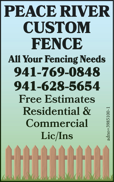 Ads for Peace River Custom Fence, LLC in Florida Gulf Coast